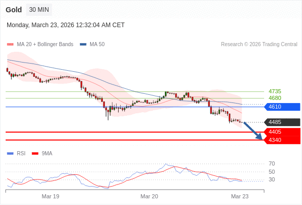 在 4610 之下,看跌,目标价位为 4405 ,然后为 4340 。