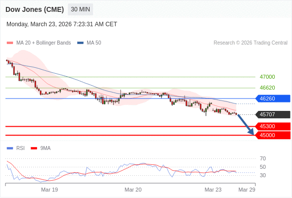 在 46260 之下,看跌,目标价位为 45300 ,然后为 45000 。