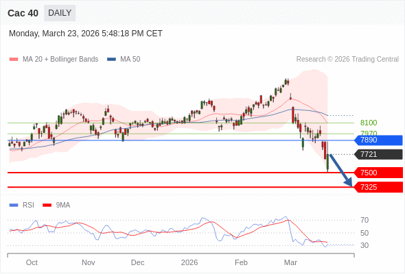 Cac 40 短线: 短期关键阻力位在7890。