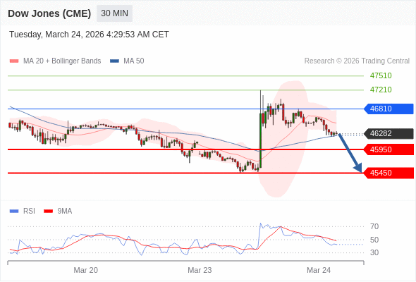 在 46810 之下,看跌,目标价位为 45950 ,然后为 45450 。