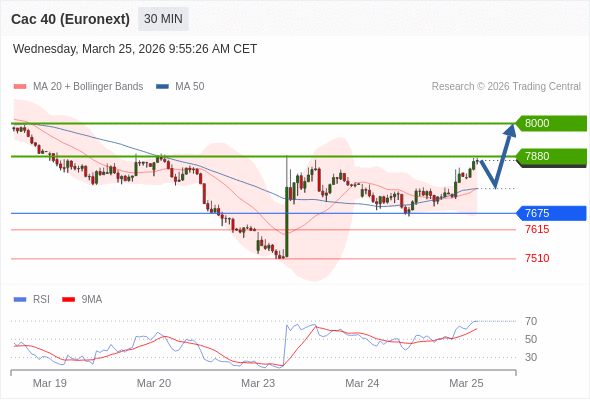 在 7675 之上,看涨,目标价位为 7880 ,然后为 8000 。