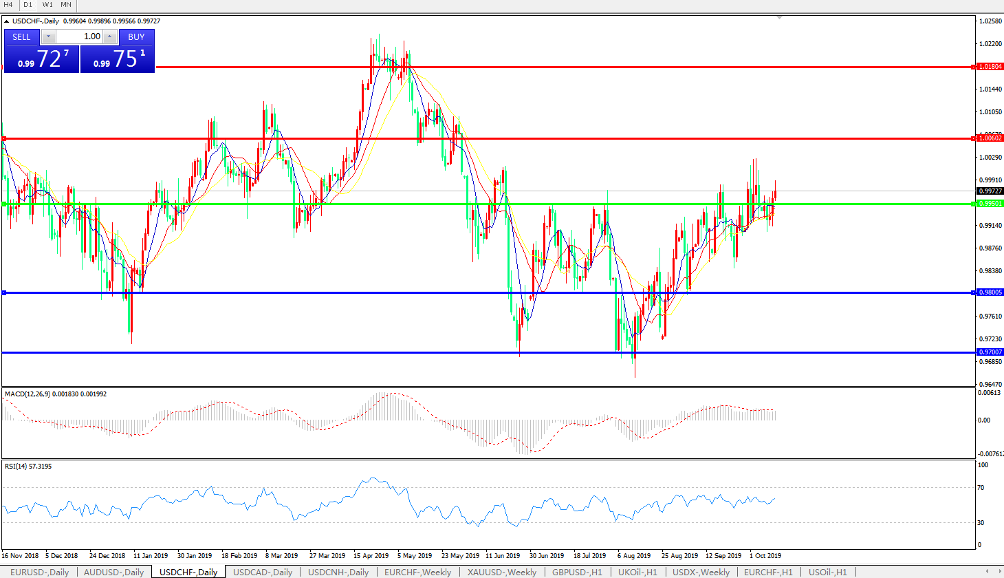美元兑瑞郎USDCHF 日线图: