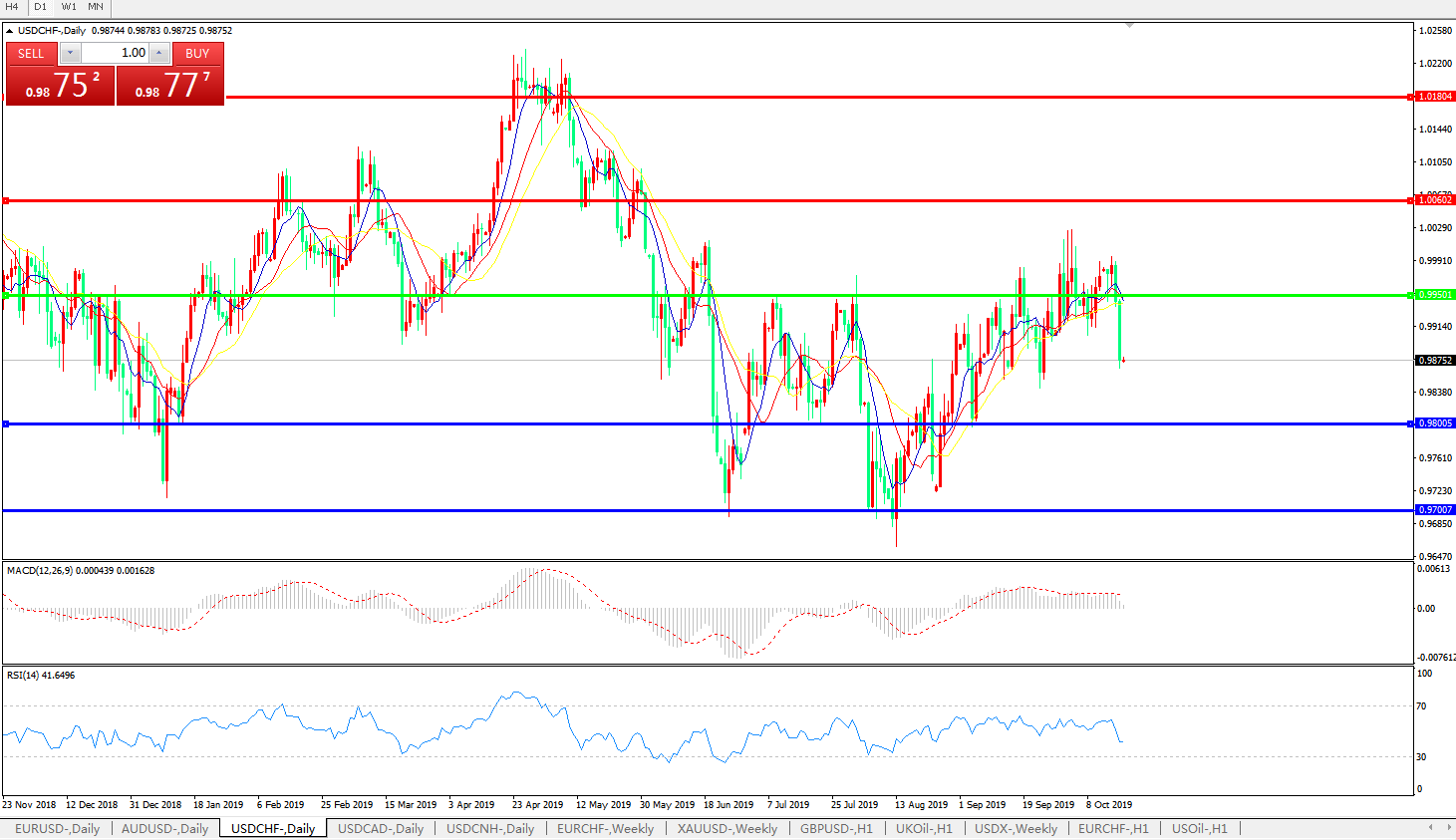 美元兑瑞郎USDCHF 日线图: