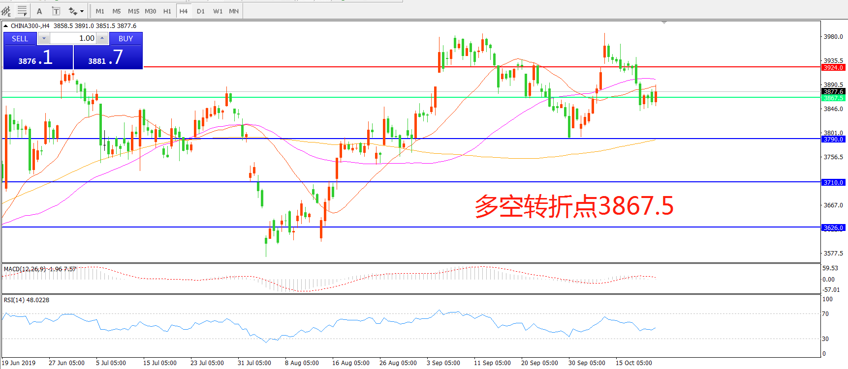 多空转折点:3867.50