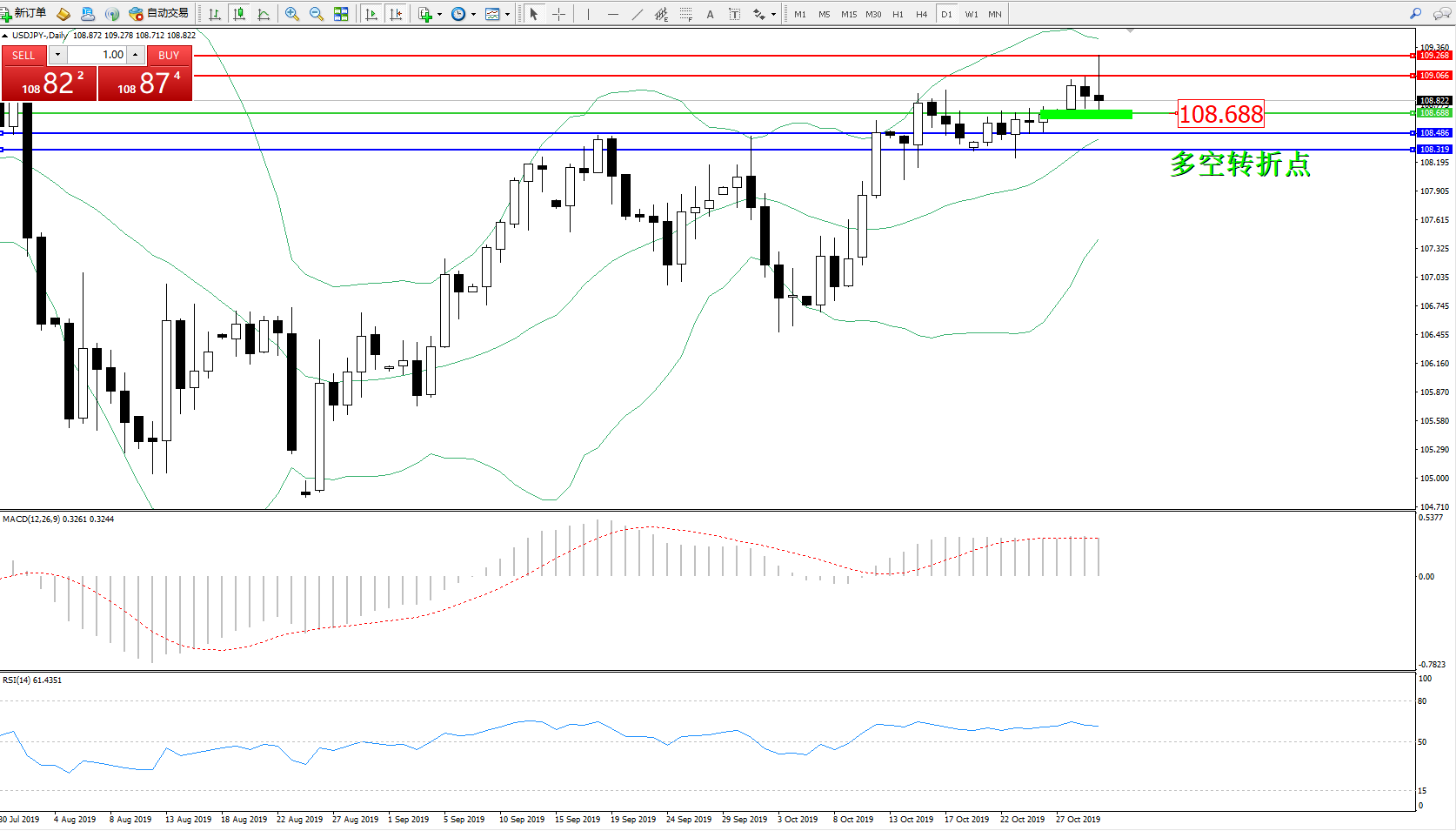 交易策略:108.688上方看涨,目标109.066109.268