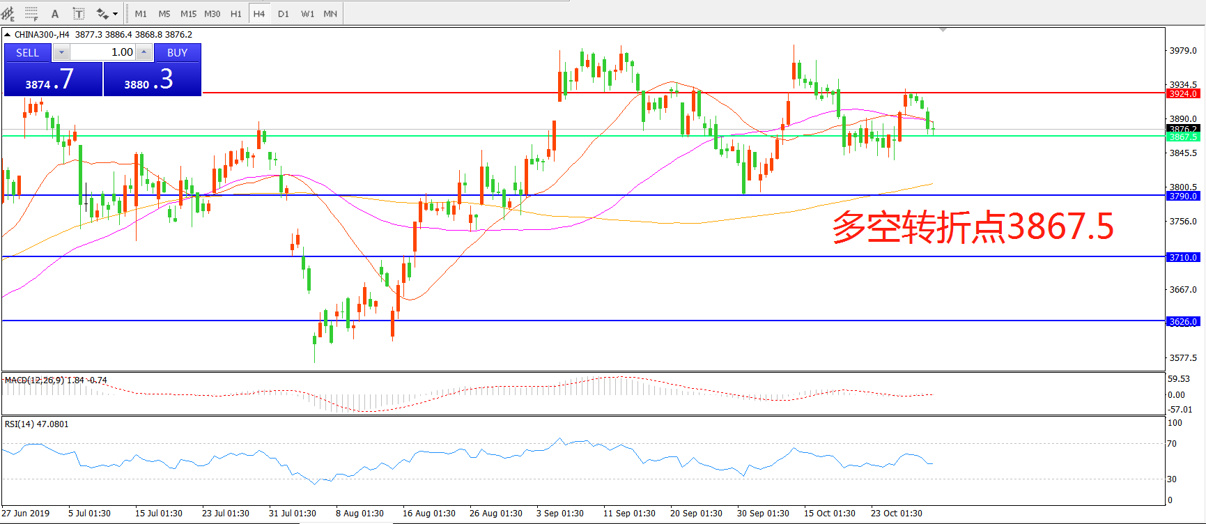 多空转折点:3867.50