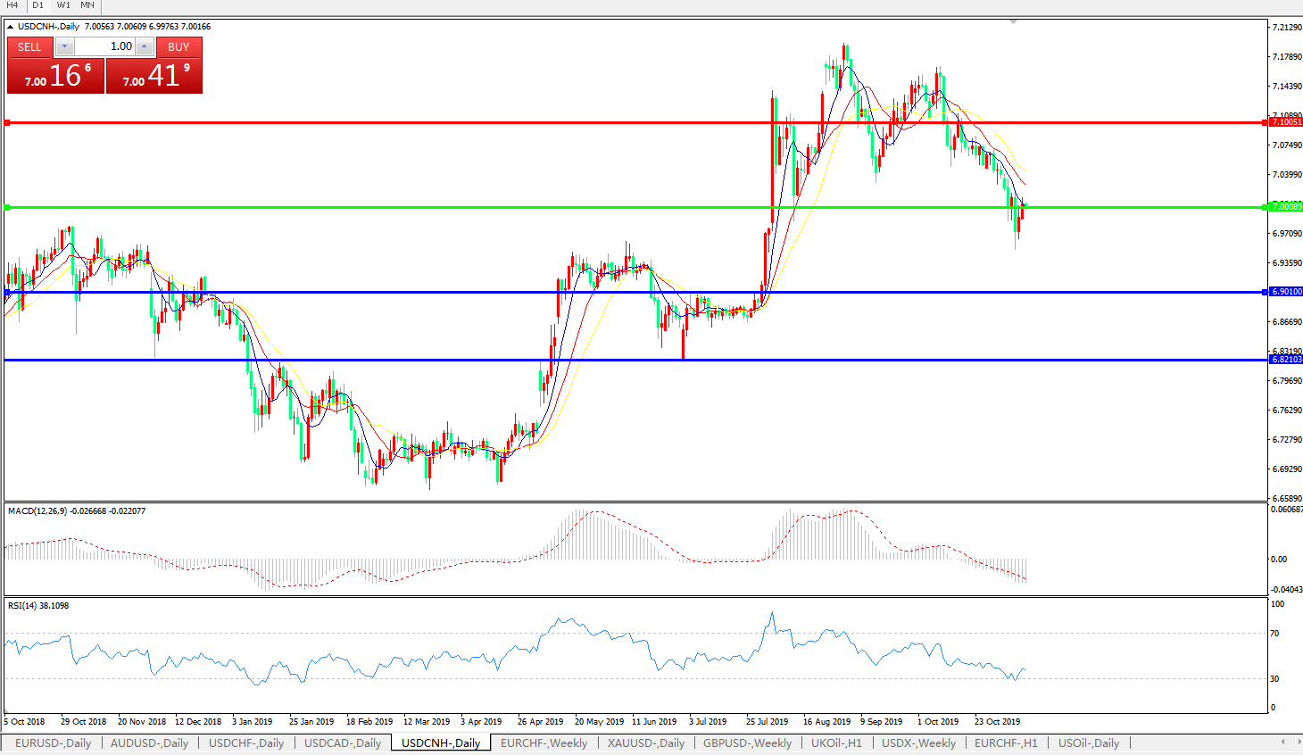 交易策略: 在7.0000之下,看跌,目标价位为6.9010,然后为6.8210。