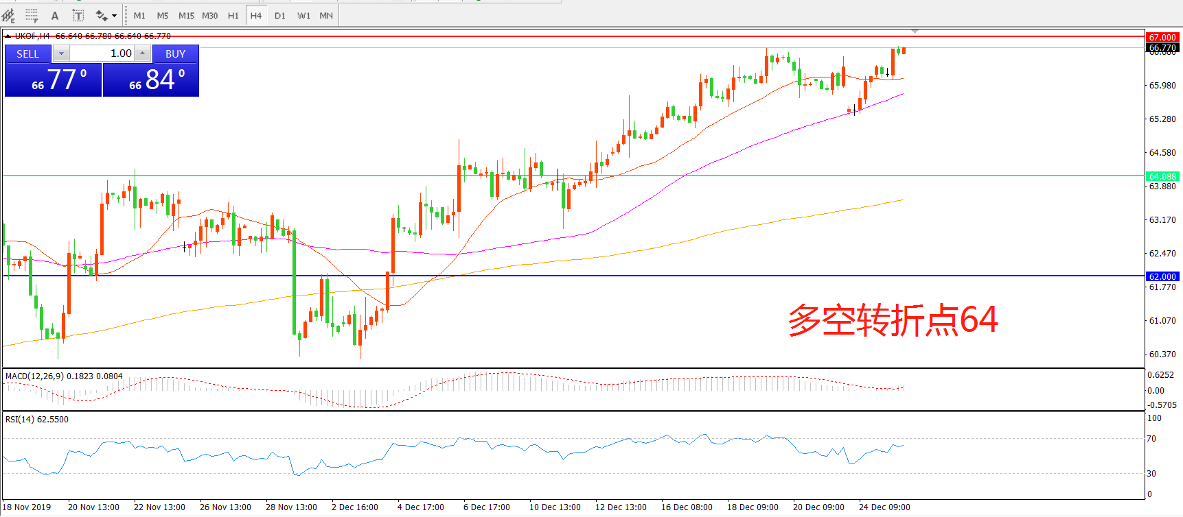 交易策略:在64.00之上看涨,目标67.00    69.50
