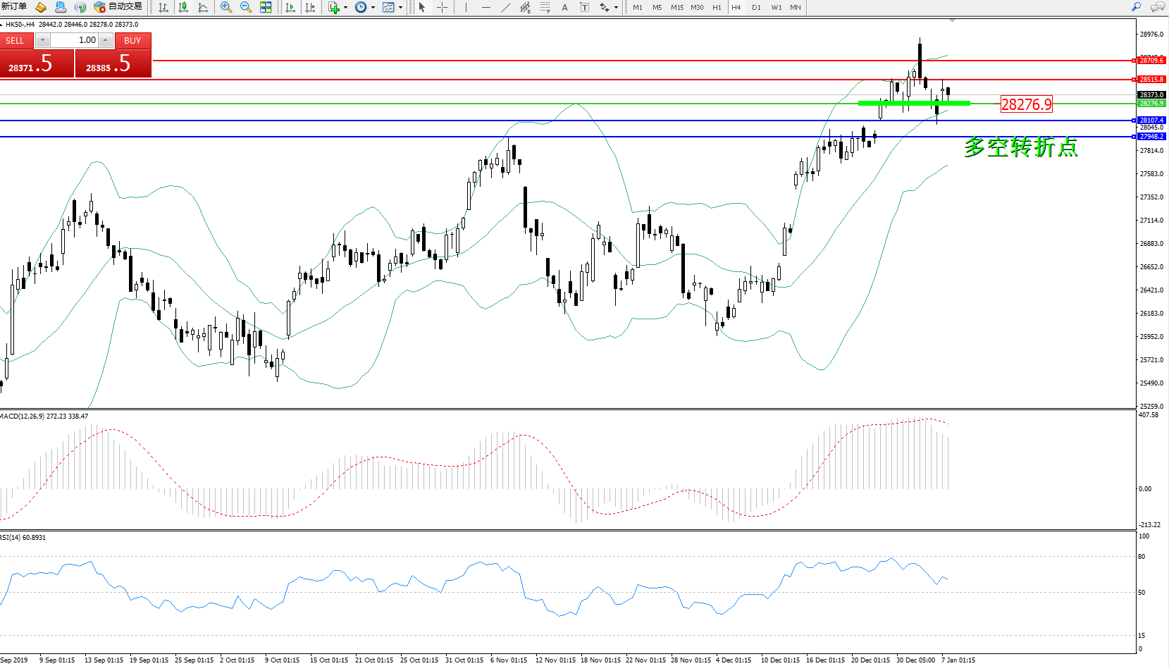 恒指HK50 ——4小时K线图显示: