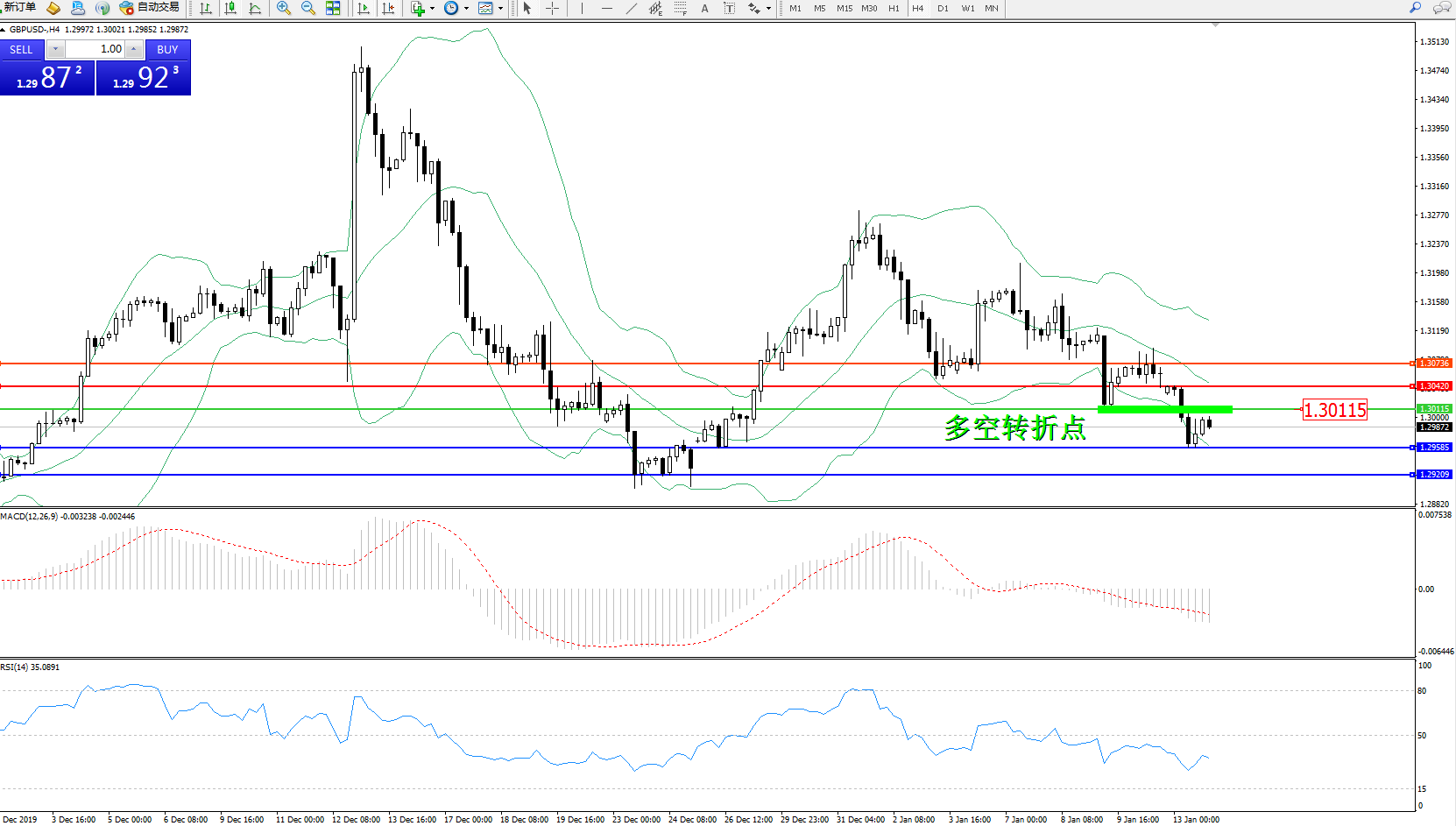 交易策略:1.30115下方看跌,目标1.295851.29209