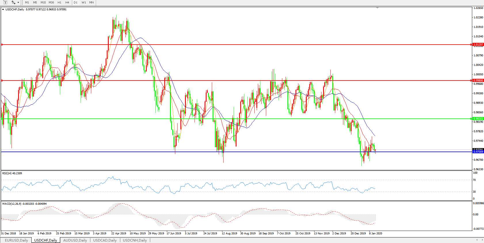 美元兑瑞郎USDCHF 日线图:
