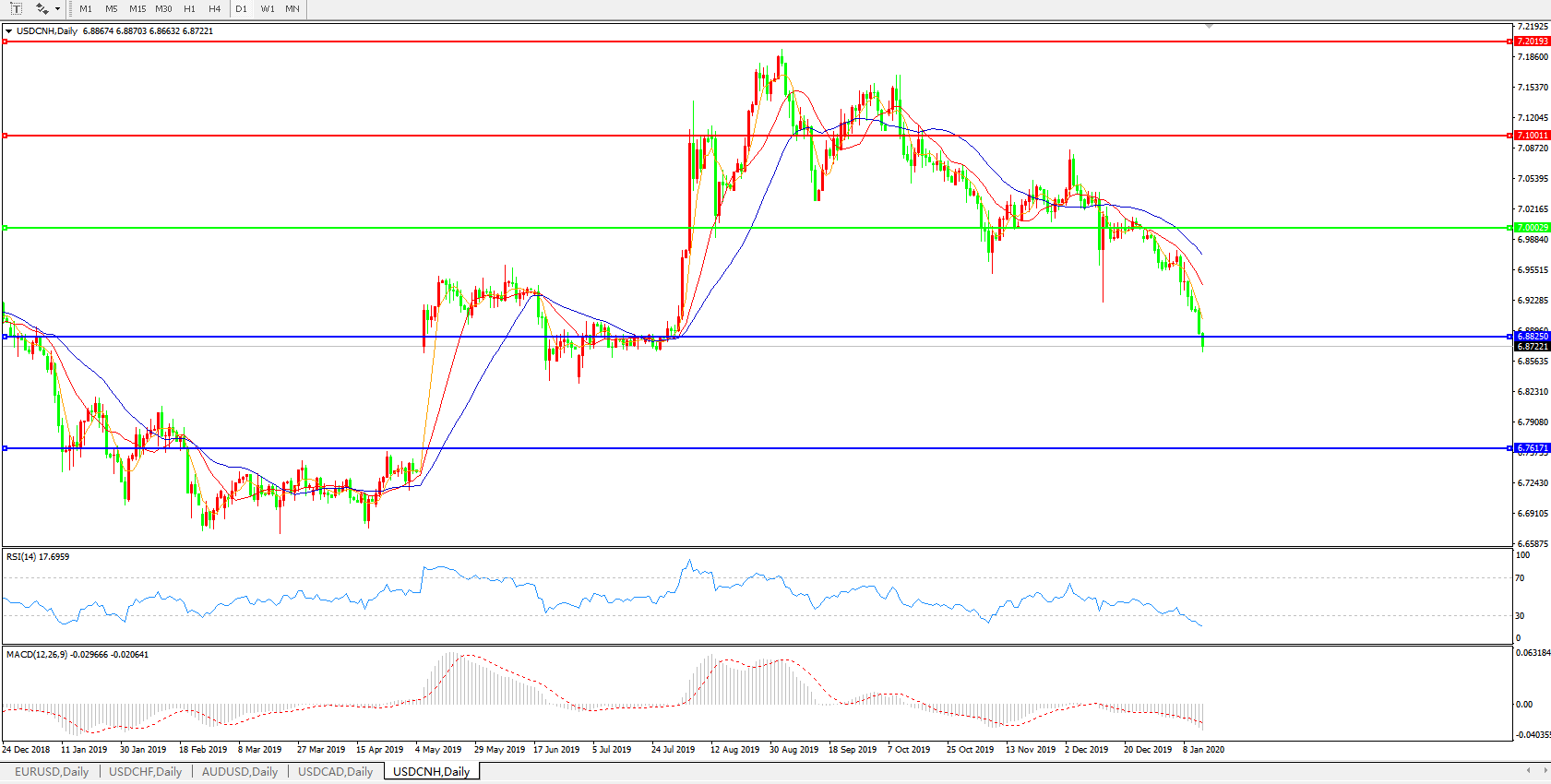 美元兑人民币USDCNH    日线图: