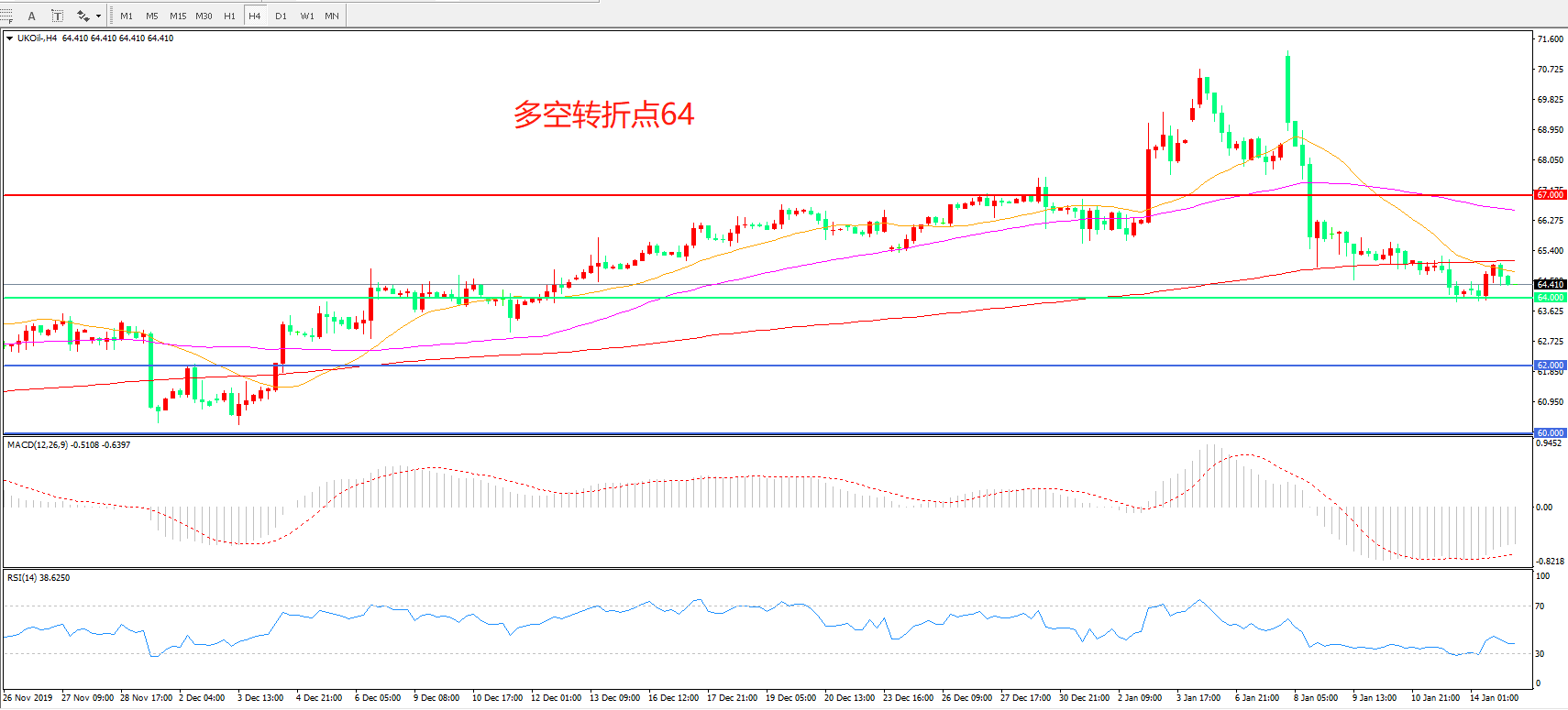 交易策略:在64.00之下看跌,目标62.00 60.00