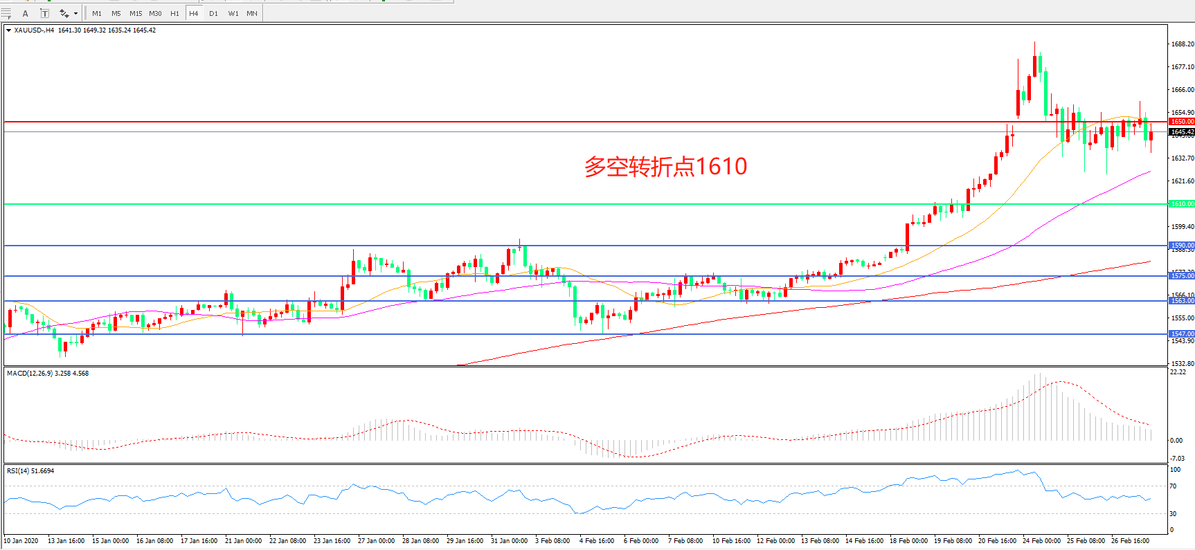 交易策略:在1610.00之上看涨,目标1650.00 1700.00