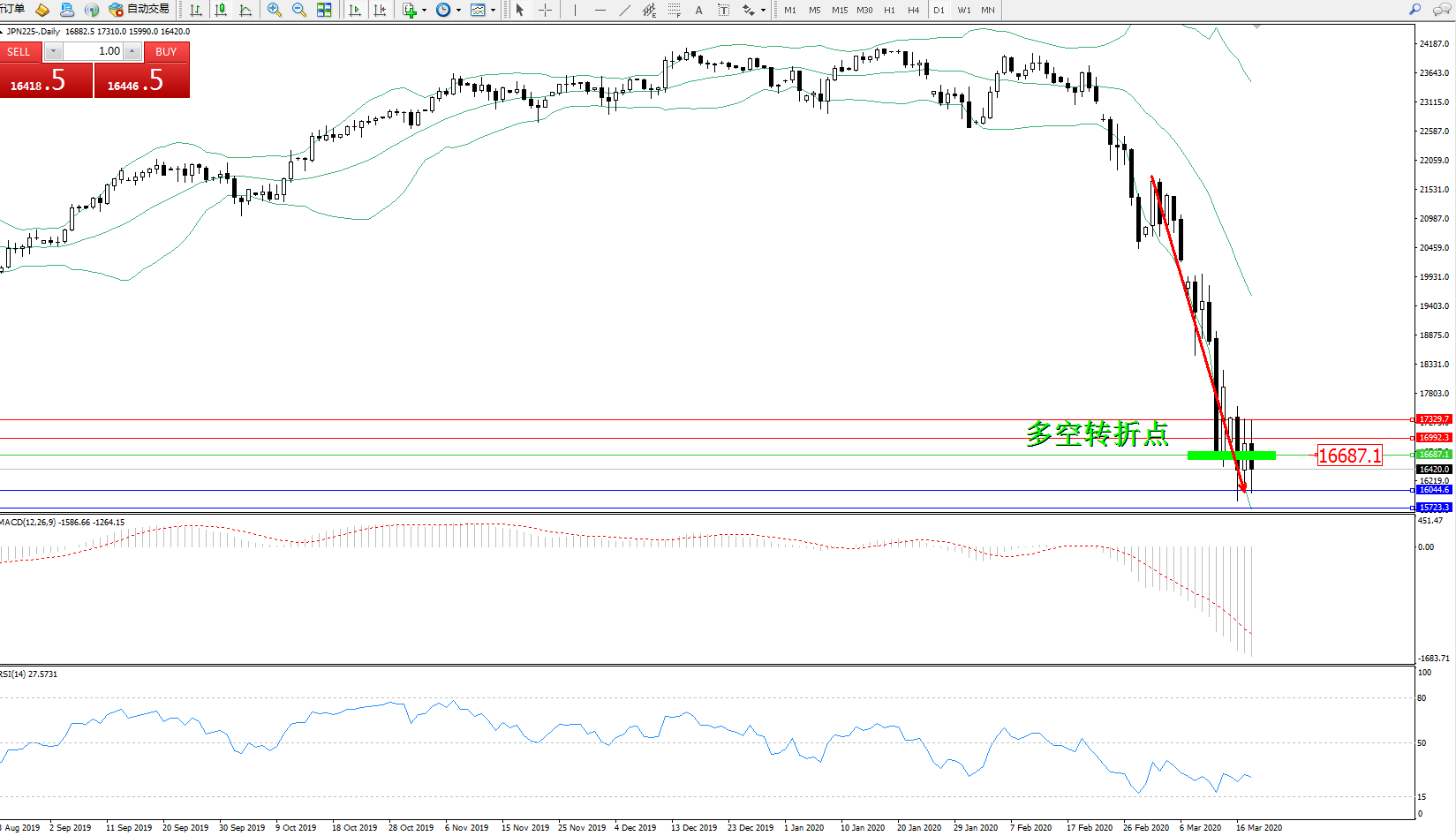 日经225指数318日(周三)收盘下跌306.53点,跌幅1.80%,报16705.00点。病毒引发的冲击与金融危机不同,当务之急是保证融资和市场稳定,若经济进一步恶化,将毫不犹豫地进一步放宽措施,若控制病毒耗时过长,可能严重影响经济,无论当前发生什么都不同于雷曼危机时,但企业可能会因需求、产出下降而面临资金紧张,日本最终将从病毒危机中复苏,现在需要对家庭和企业提供支持,以便在卫生风险被遏制时经济迈向V型复苏道路。