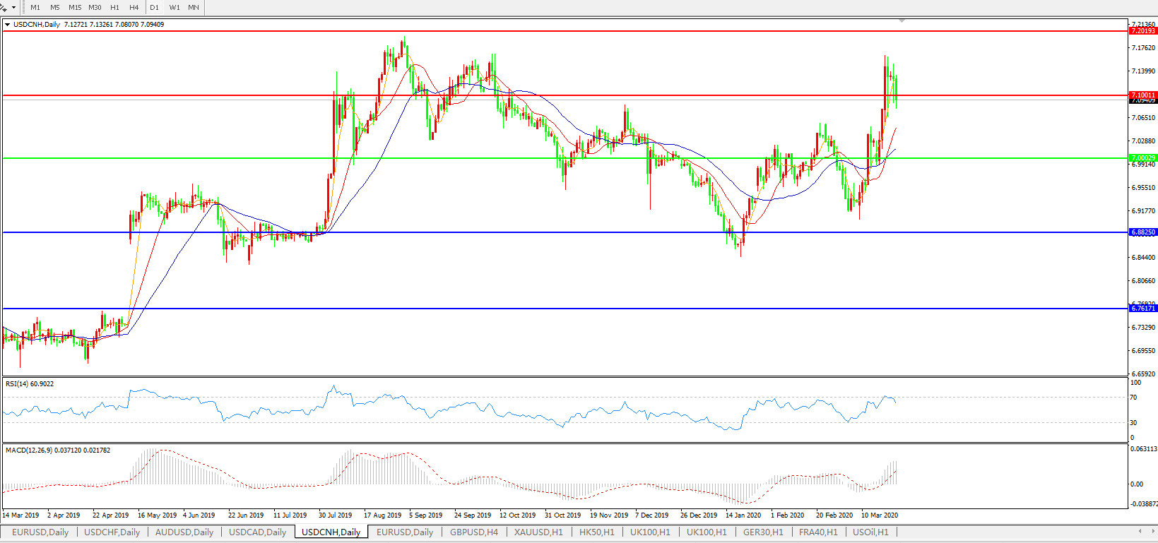 美元兑人民币USDCNH    日线图: