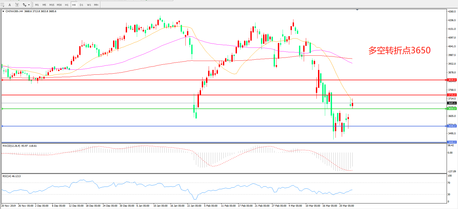 沪深300  CHINA 300   4小时图