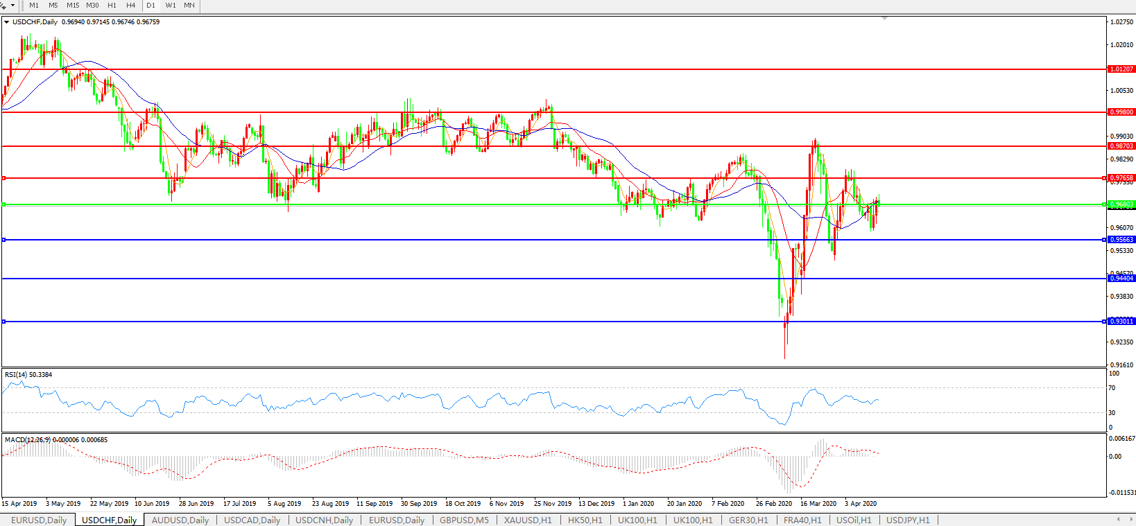 备选策略:0.9680上方看涨,目标0.9765、0.9870