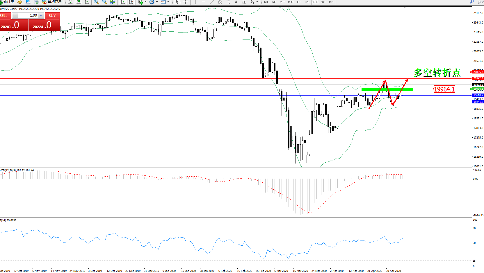 日经指数JPN225——日K线图显示:
