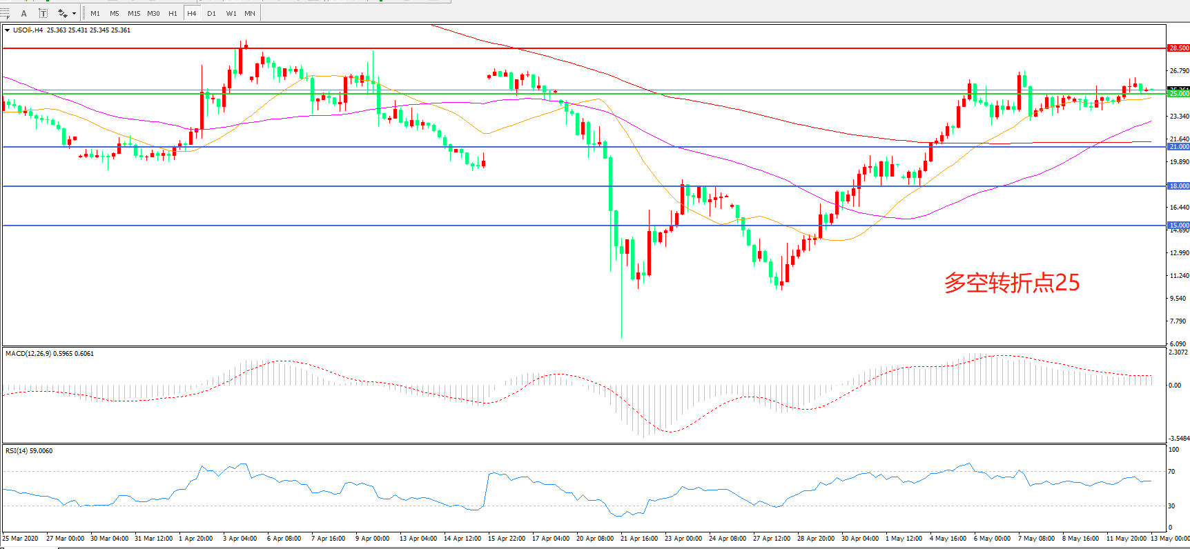 周二(5月12日),美国WTI原油在OPEC+和美国减产的前景下温和反弹,一度站上26美元,但根据5月13日凌晨公布的API数据显示,当周API原油库存大幅增加758万桶,高于市场预期,美油短线快速走低,收报25.00美元/桶。