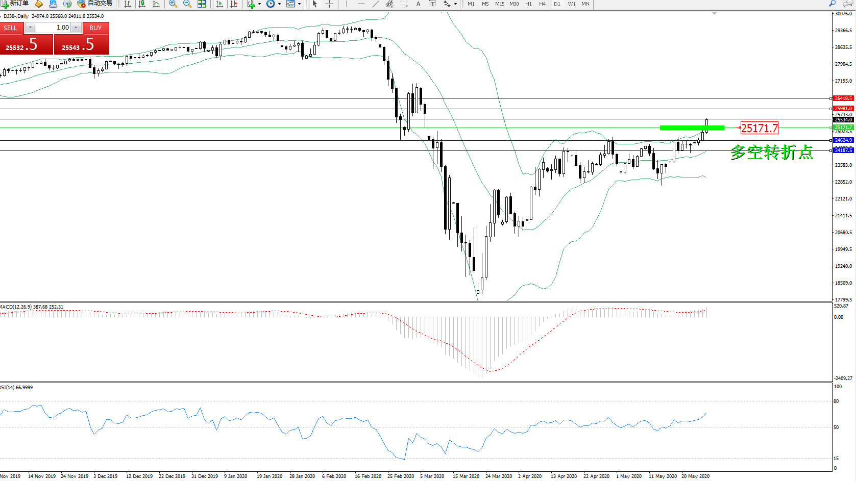 交易策略:25171上方看涨,目标25981、26418