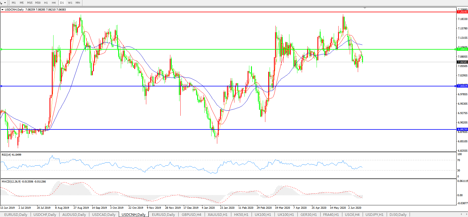 交易策略: 在7.1000之下,看跌,目标价位为7.0000,然后为6.8820。
