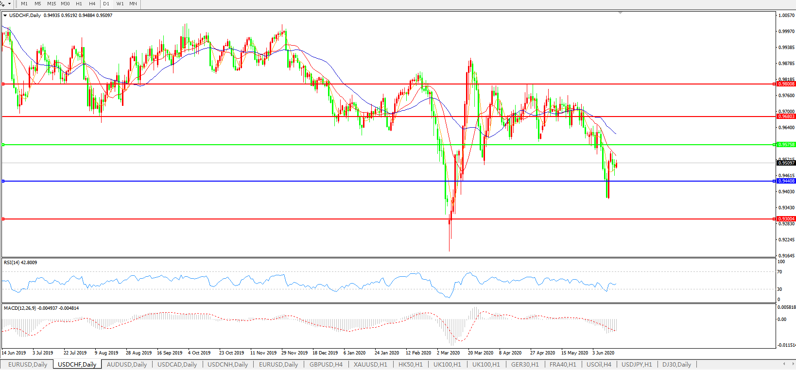 美元兑瑞郎USDCHF 日线图: