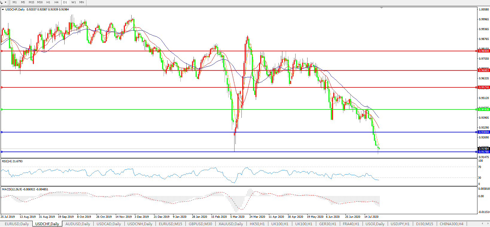 美元兑瑞郎USDCHF 日线图:
