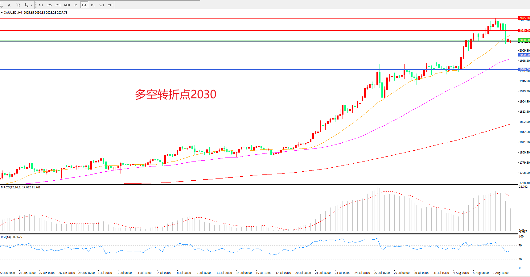 多空转折点:2030.00