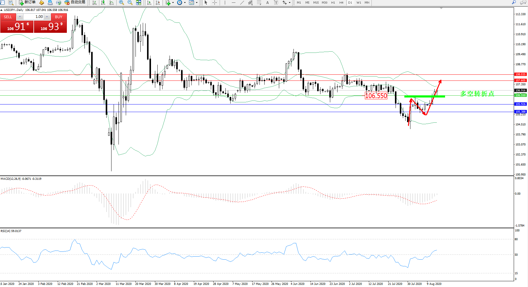 多空转折点:106.550