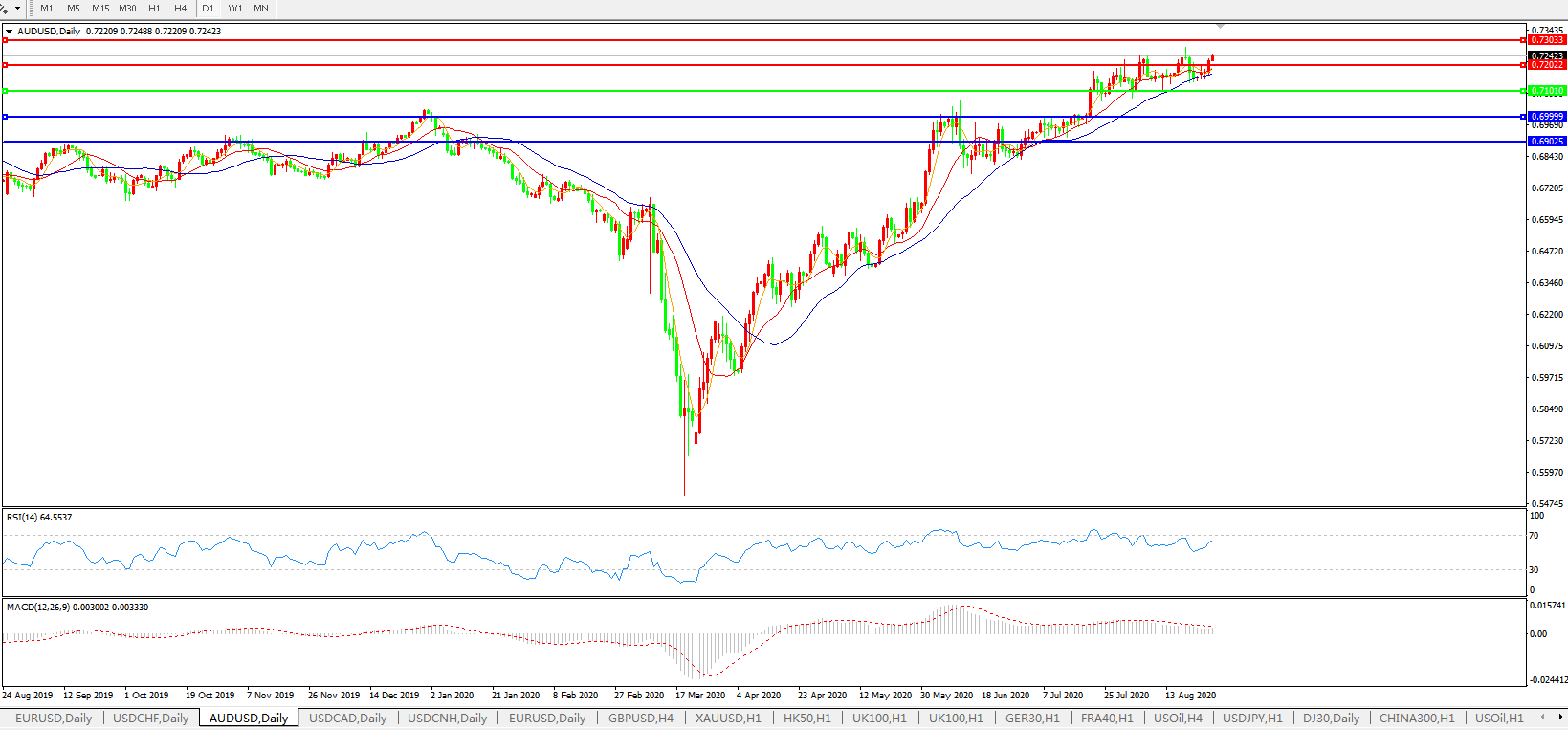 澳元兑美元AUDUSD 日线图: