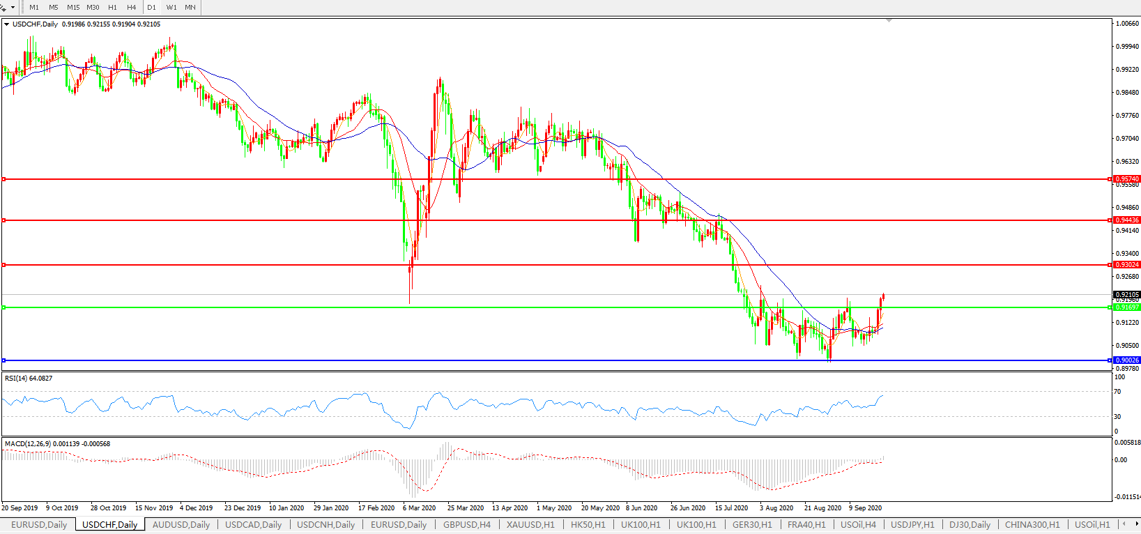 交易策略:0.9170上方看涨,目标0.9300、0.9440