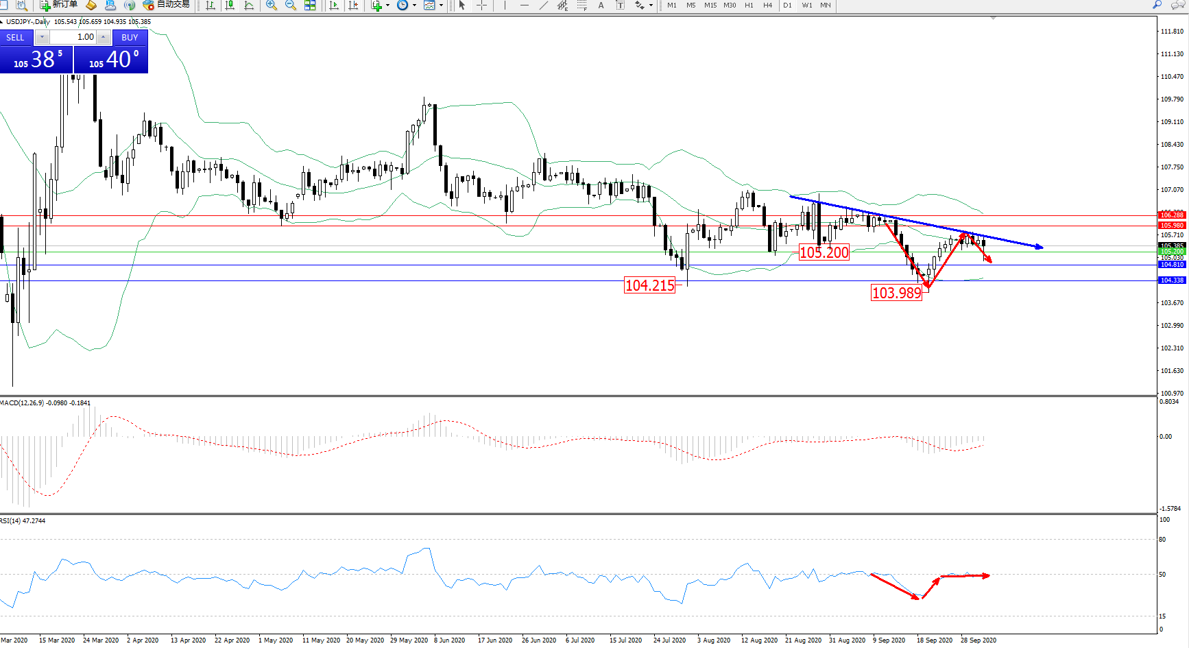 交易策略:105.200上方看涨,目标105.980、106.288