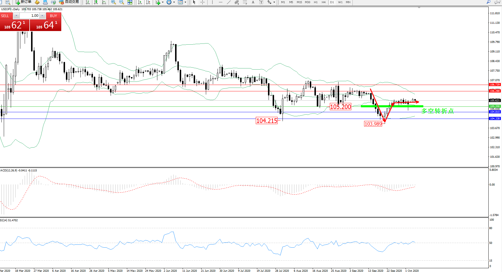 多空转折点:105.200