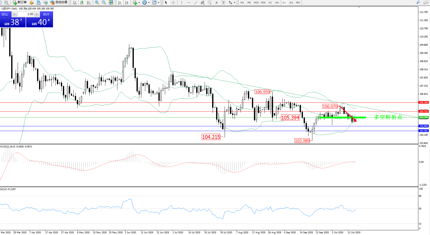 备选策略:105.394上方看涨,目标105.755、106.288