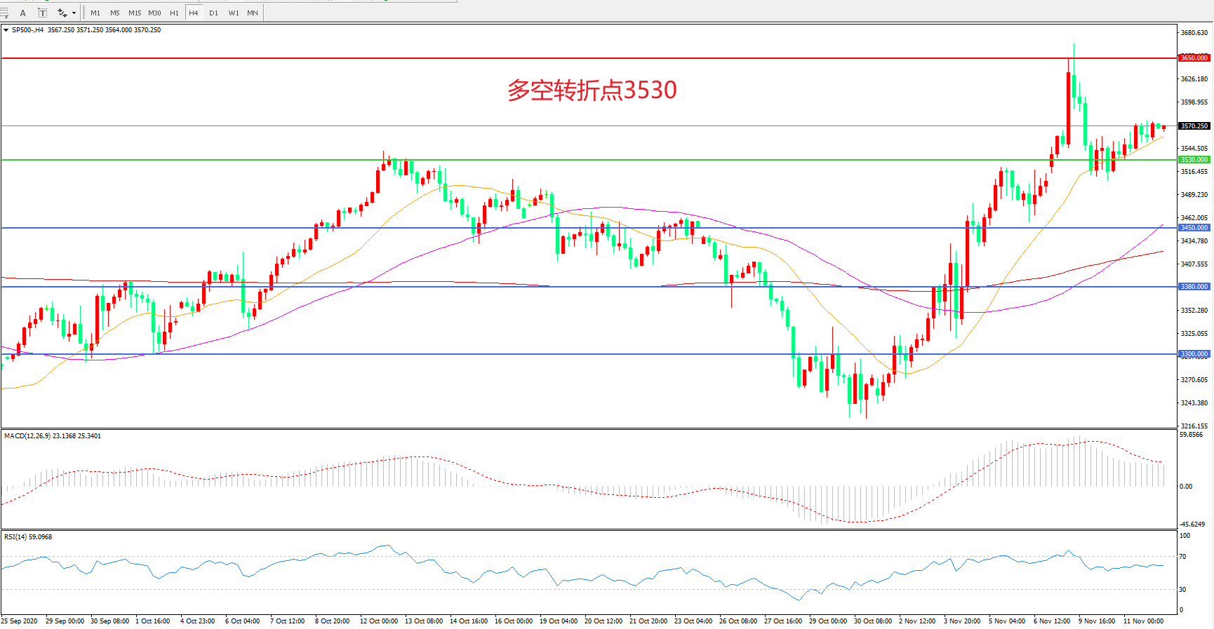 交易策略:在3530.00之上看涨,目标3650.00         3730.00