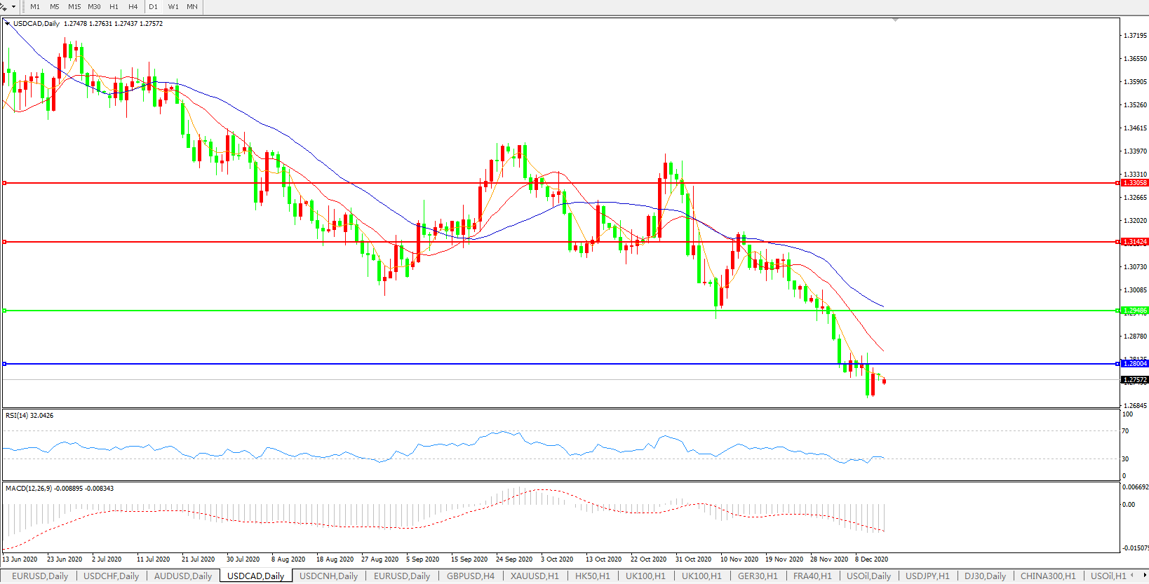 美元兑加元USDCAD 日线图: