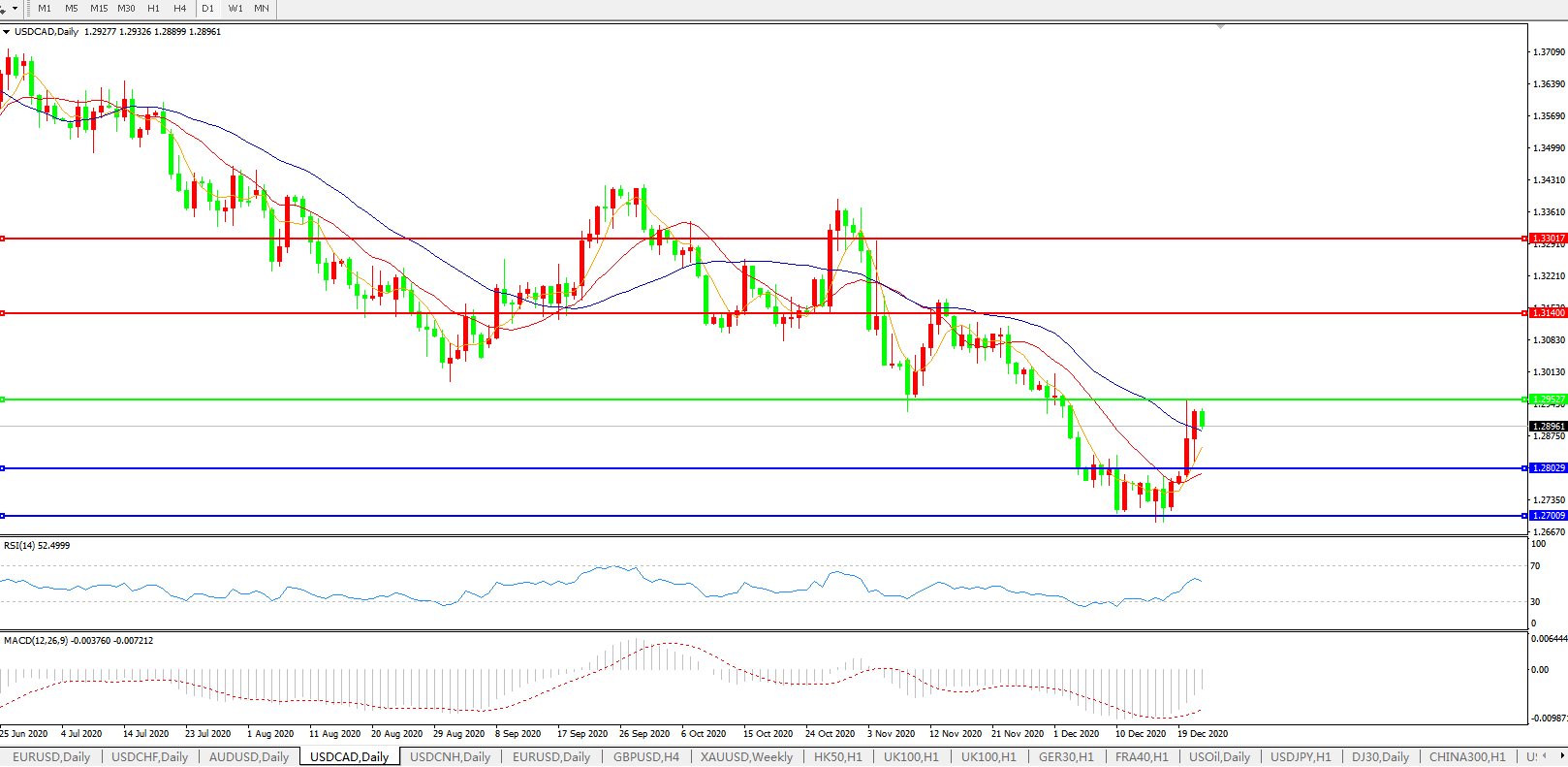 美元兑加元USDCAD    日线图:
