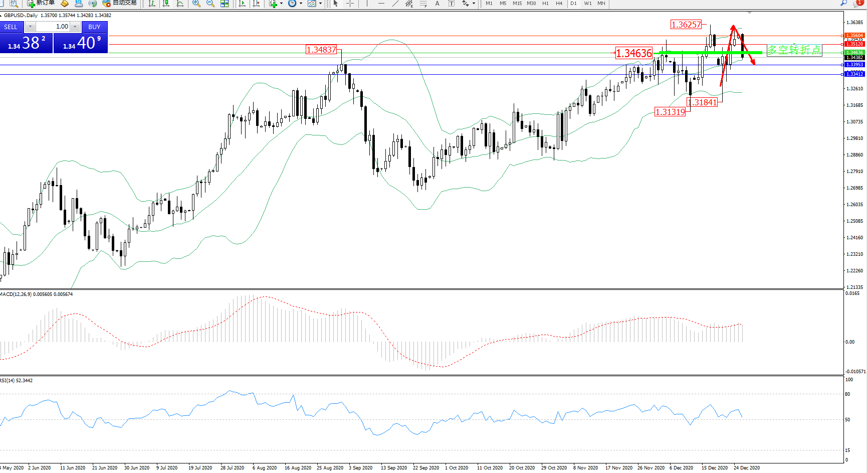 备选策略:1.34636上方看涨,目标1.35120、1.35604