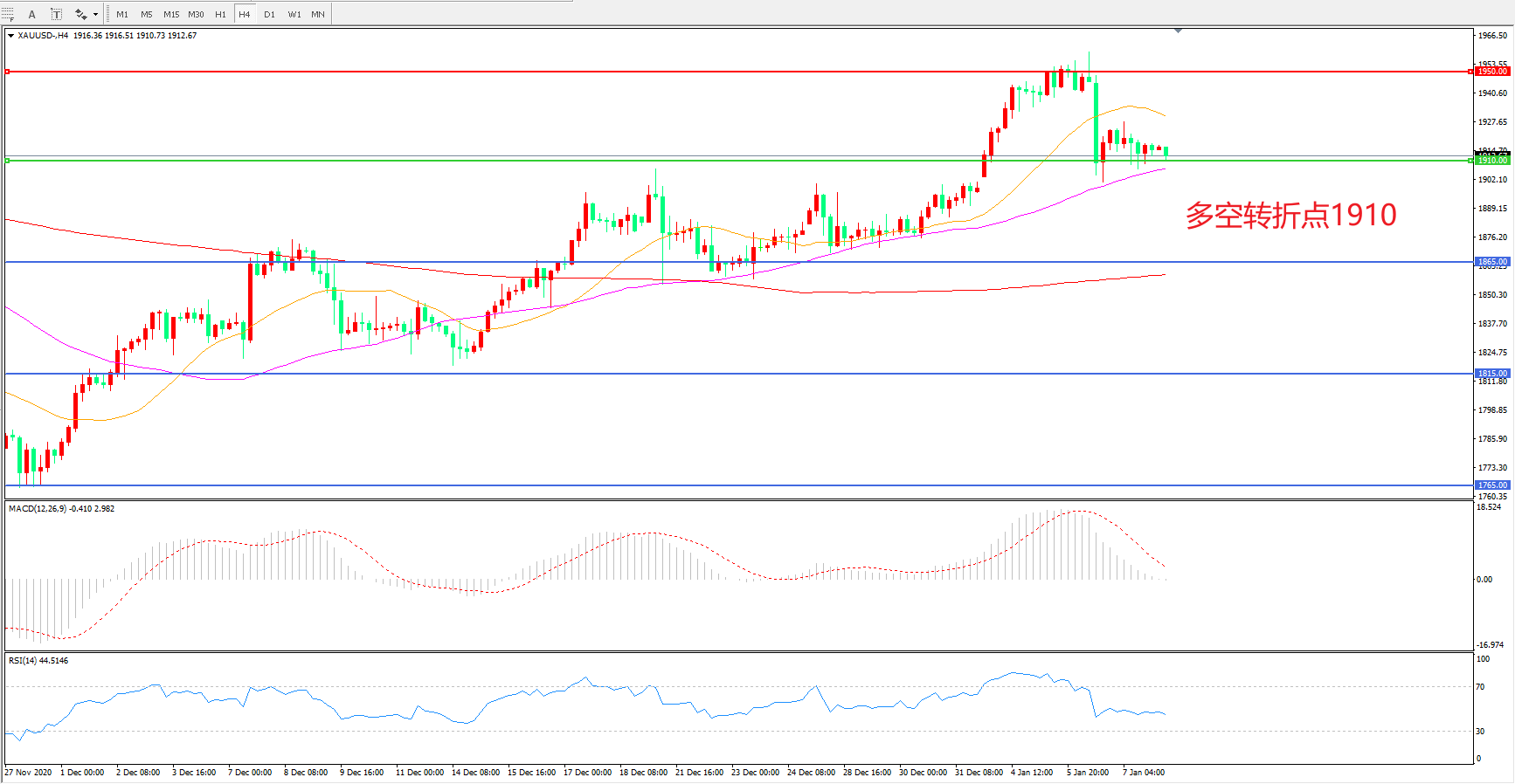 现货黄金XAU/USD 4小时图
