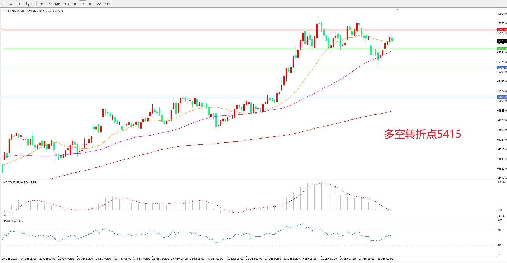 多空转折点:5415.00
