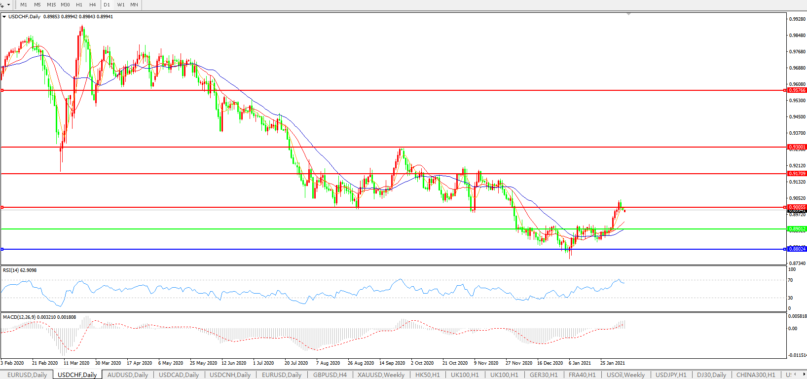 美元兑瑞郎USDCHF    日线图: