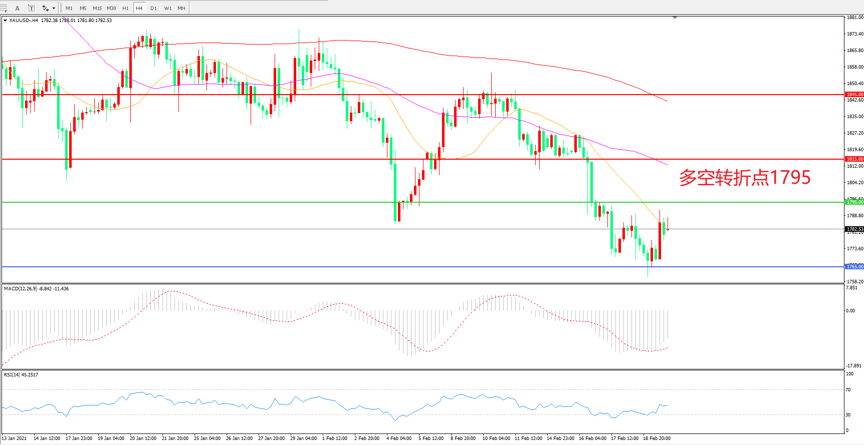 交易策略:在1795.00之下看跌,目标1815.00 1845.00