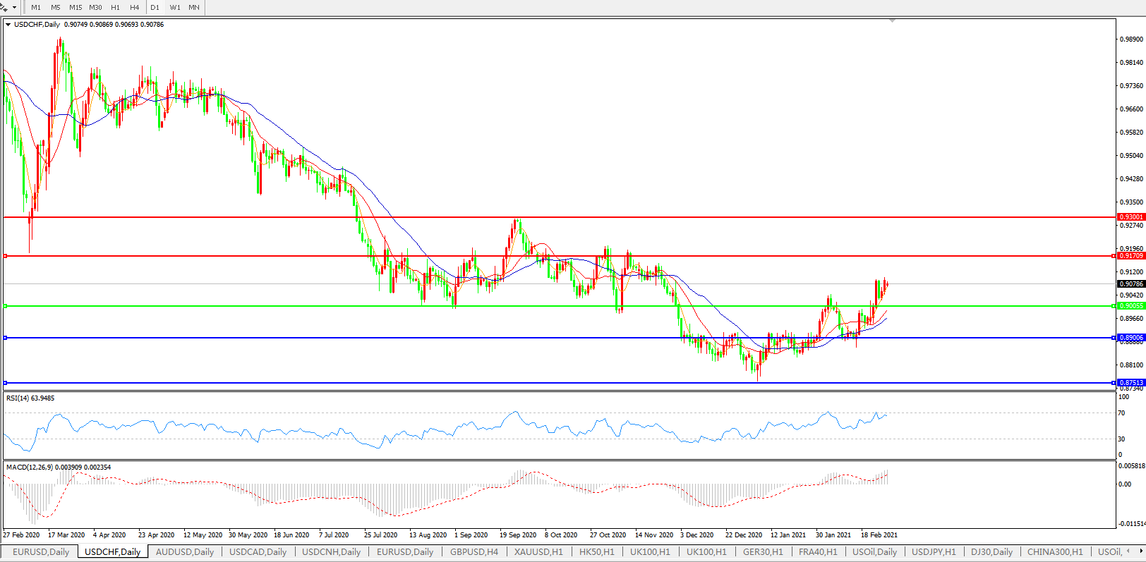 美元兑瑞郎USDCHF 日线图: