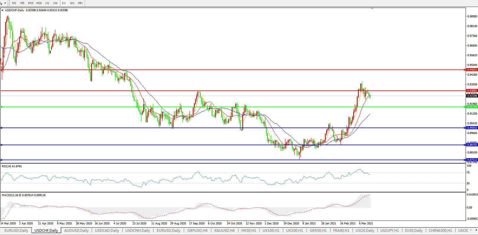美元兑瑞郎USDCHF 日线图: