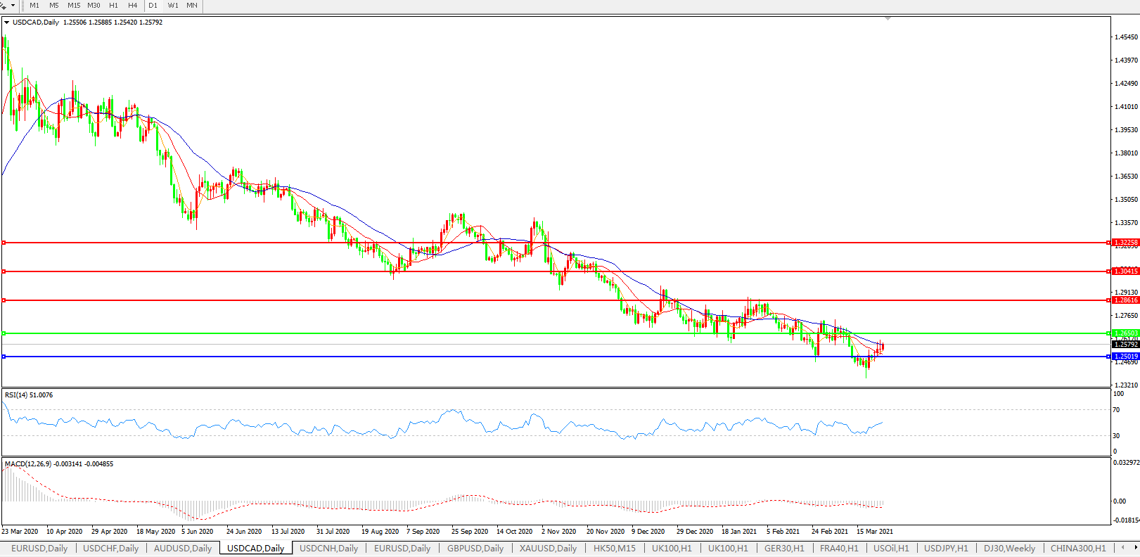 美元兑加元USDCAD    日线图: