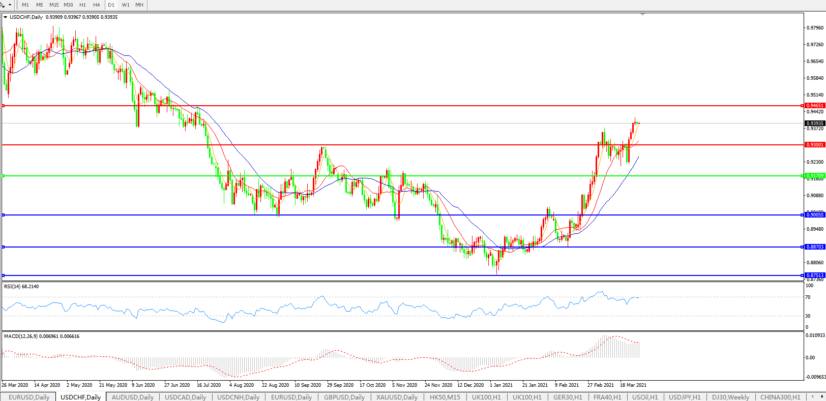 美元兑瑞郎USDCHF 日线图: