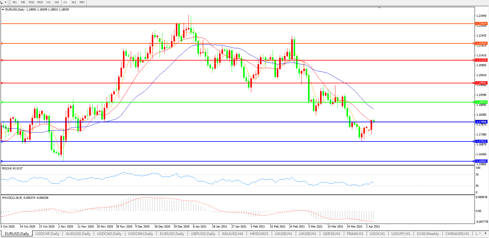 欧元兑美元EURUSD   日线图: