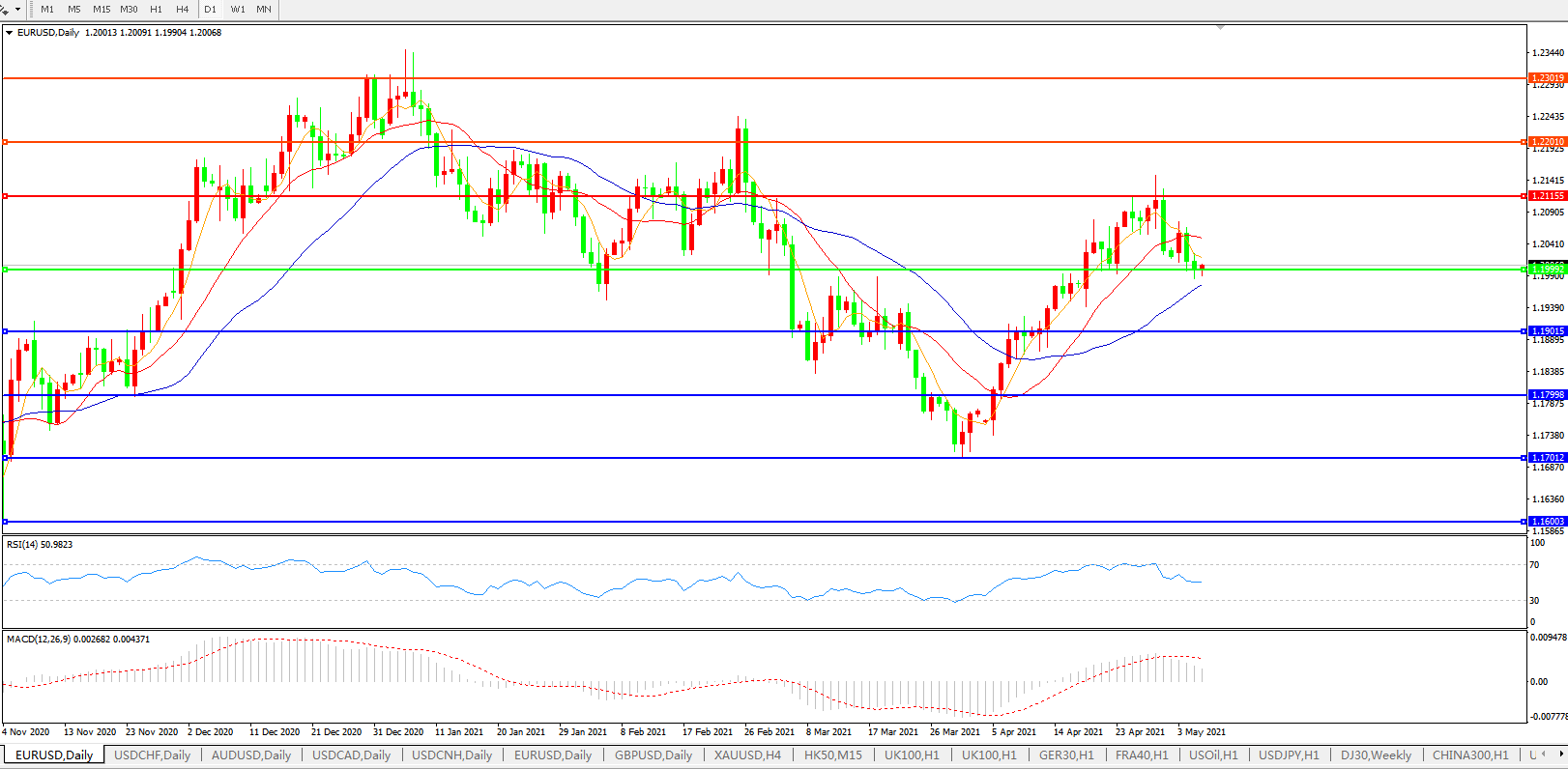 备选策略:1.2000下方看跌,目标1.1900、1.1800