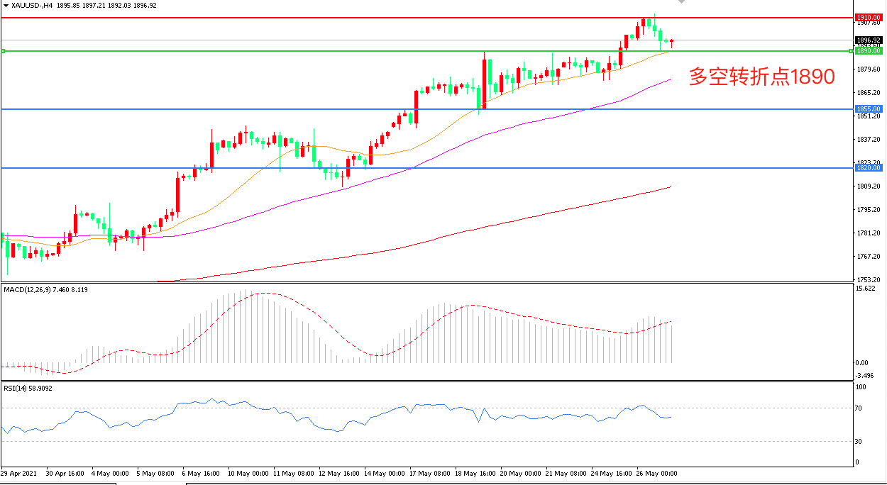 交易策略:在1890.00之上看涨,目标1910.00    1945.00